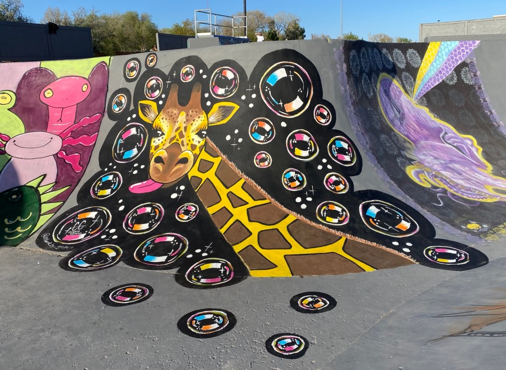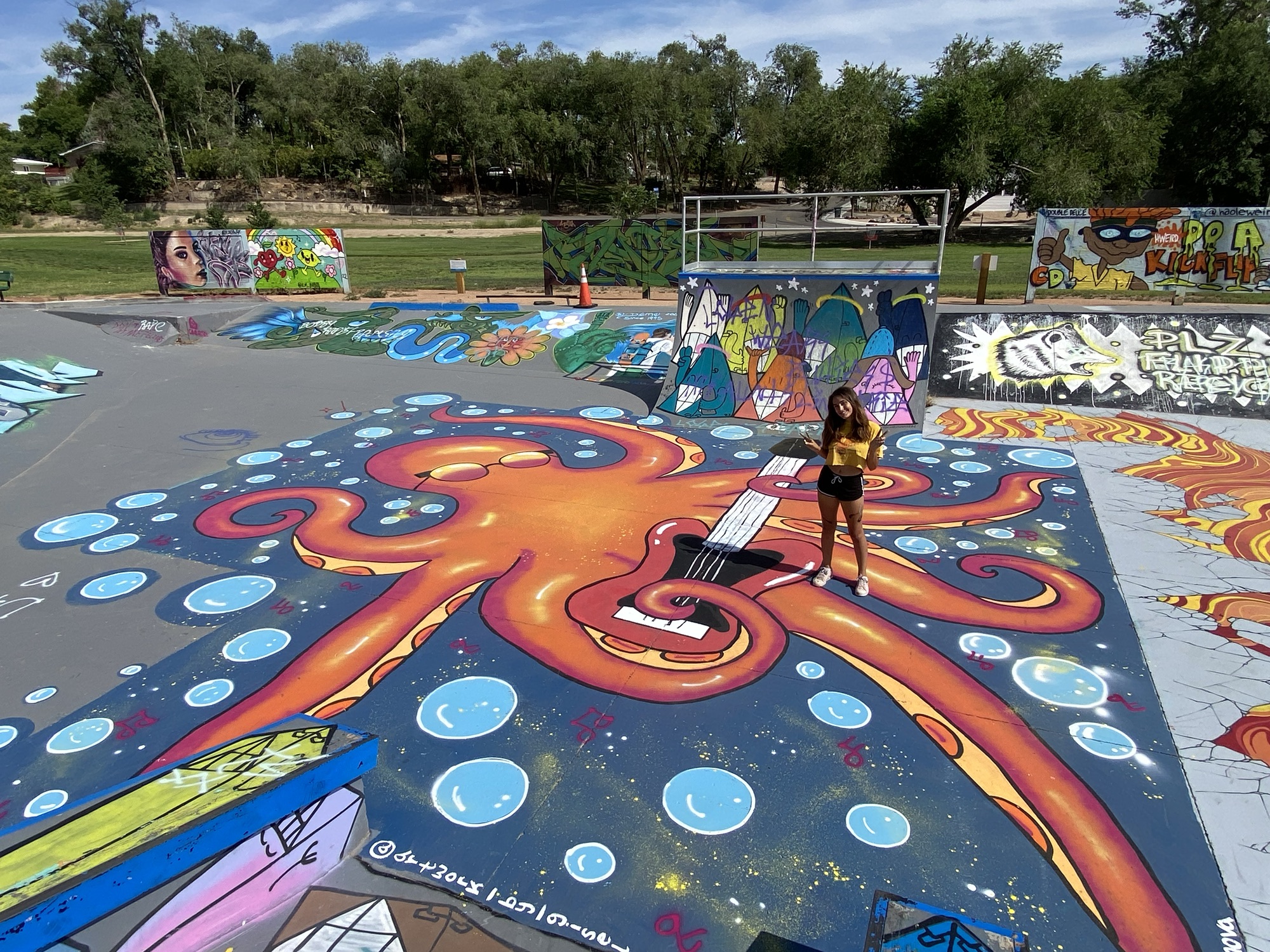 300 sq ft, Acrylic Paint on concrete, located at Westlake Skatepark in Grand Junction, CO, 2022