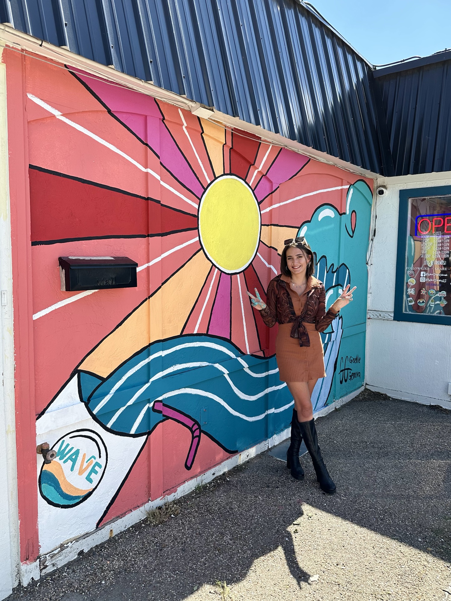 200 sq ft, Acrylic Paint on drivethru wall, located at Wave Drinks in Grand Junction, CO, 2023